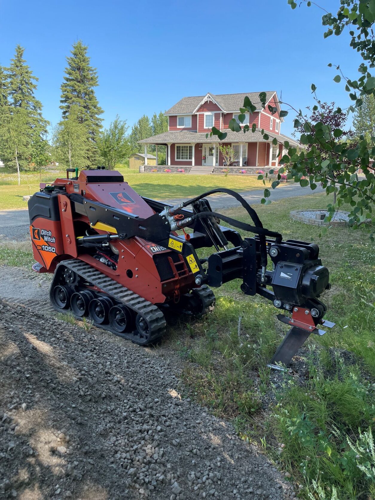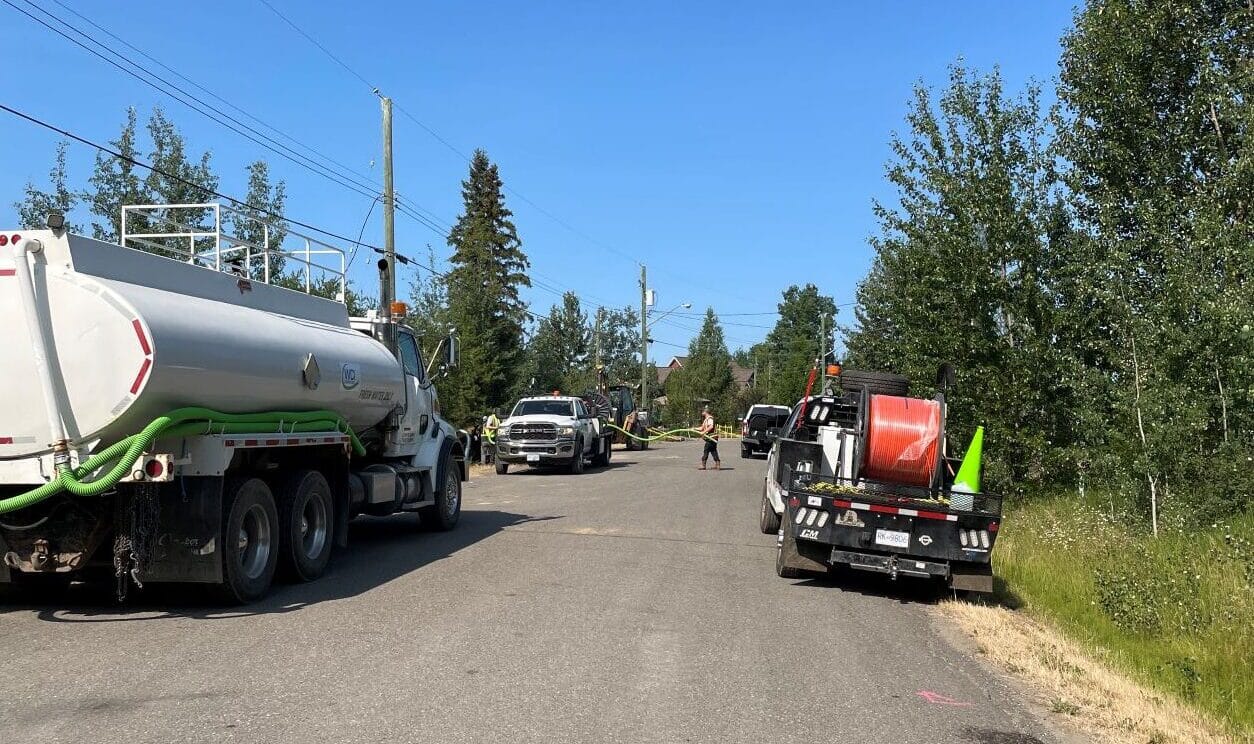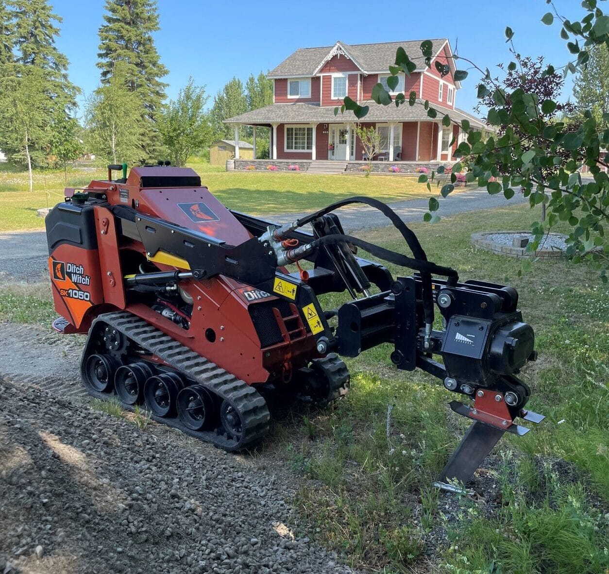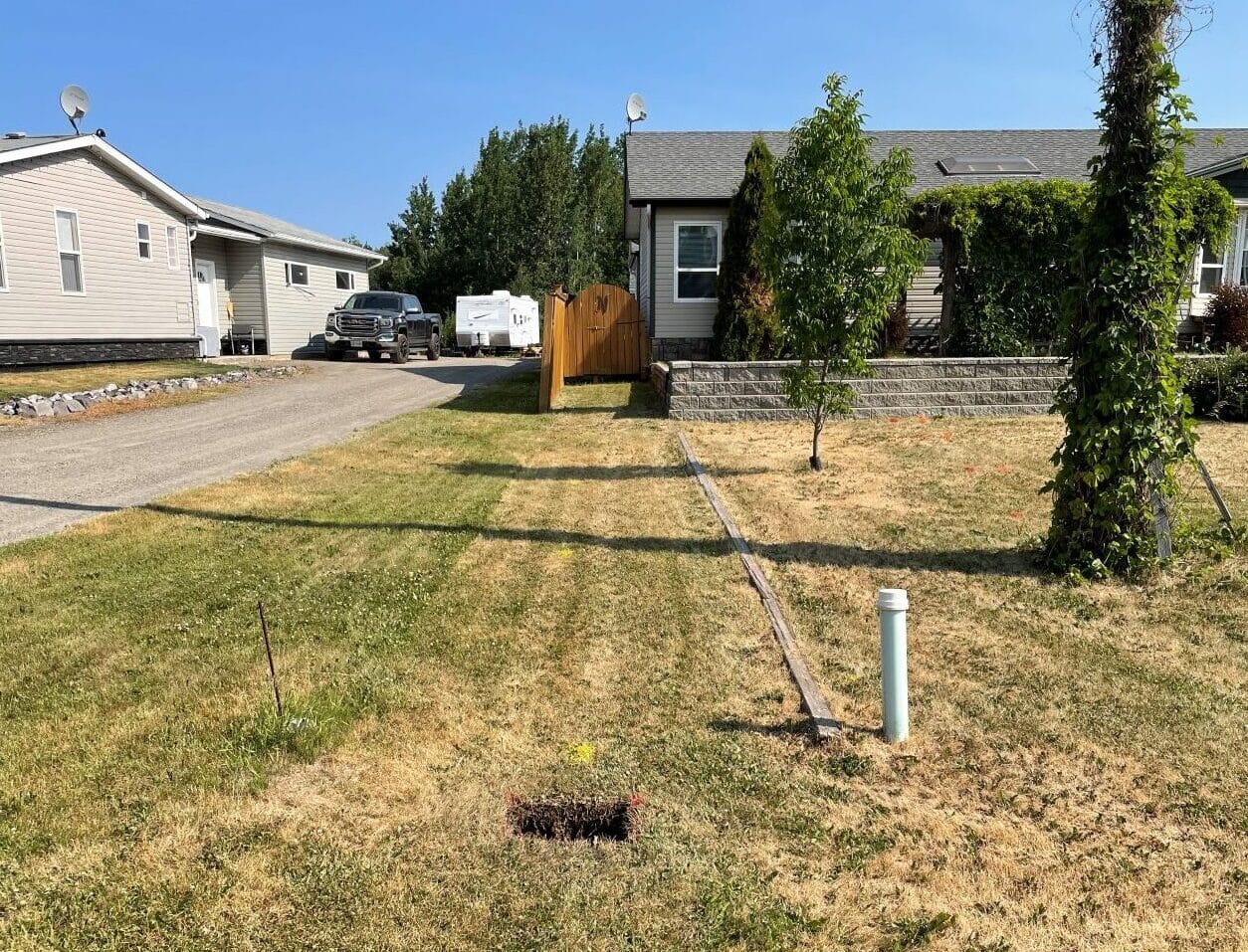 Here are some photos that represent what the home fibre connection process will look like in your community. 1. Backbone conduit is ready for underground installation. 2. Horizontal Directional Drill. Pure water is used to keep the drill hole open, so conduit can be pulled back through. 3. Water Supply for Horizontal Directional Drill 4. Hydro Vac captures all material flowing out of the Drill hole. 5. WCI Crew performing a Horizontal Drill. 6. Pilot hole for Vibratory Plow entry. 7. Vibratory Plow – Plows Fibre Optic in to 600mm depth, warning tape at 300mm. 8. Completed Drop, conduit in foreground. 9. Completed Home Drop