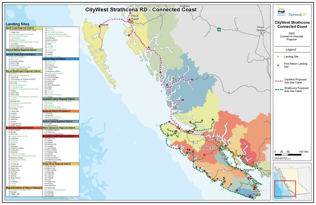 The Connected Coast project will construct and operate a subsea fibre-optic network that will run from north of Prince Rupert, to Haida Gwaii, south along coastal BC to Vancouver, then around Vancouver Island. The cable will allow up to 154 communities, including 56 First Nations communities with the opportunity to connect to high-speed internet.